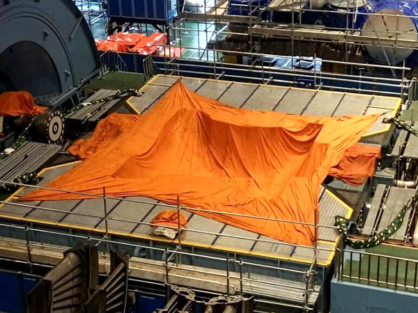JXPT型汽轮机低压缸检修平台,是汽轮机组检修时揭开低压缸后盖在缸面上的工作平台。检修平台的主盖板为折页式设计。内外缸盖板选用6~8㎜厚防滑铝花纹板制作,使用时低压缸外缸部分的盖板与盖板由支撑杆相互连接形成一个整体。能满足汽轮机揭开外缸和内缸后覆盖排气孔的要求。使用完毕后可全部放置在专用的存放架或存放箱内保管,以便下次检修时重复使用。